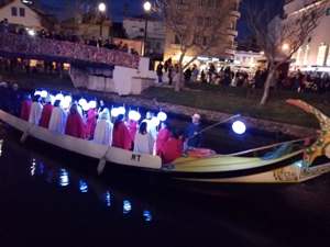 Os moliceiros deslizaram com pais Natal até à Fonte Nova. No Canal Central, na Ponte Praça, ligaram a iluminação na cidade e o cortejo seguiu pelo Côjo para o Cais da Fonte Nova, onde houve uma performance de Claudio Hochman e grupos de teatro de Aveiro. E a árvore de Natal também ficou acesa.