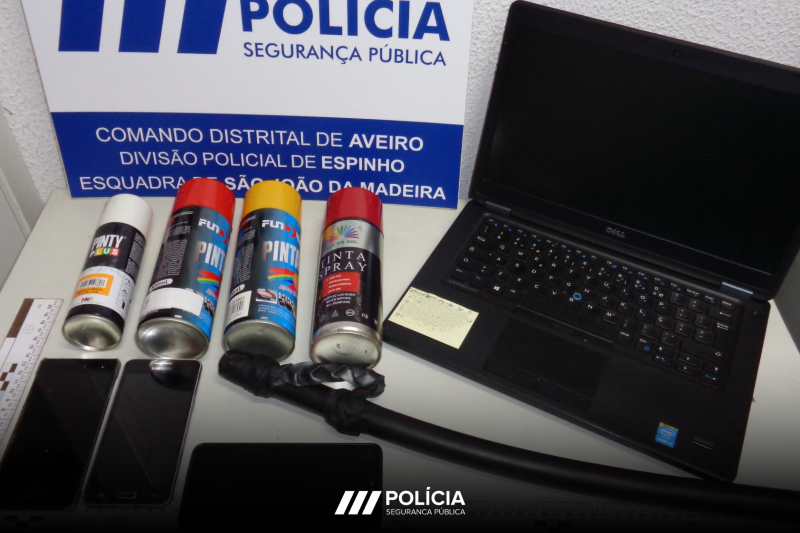 A PSP de Espinho procurava provas no âmbito de uma investigação relativa à suspeita da prática dos crimes de ameaça e injúria agravada, perseguição, violação de domicílio e perturbação da vida privada contra uma cidadã de 65 anos e encontrou, e apreendeu, um bastão de borracha, supostamente utilizados no cometimento dos ilícitos criminais em investigação.1 computador portátil, 3 telemóveis e 4 latas de spray,