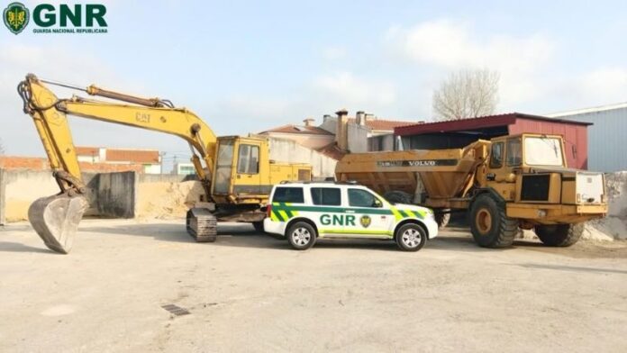 A Guarda apreendeu uma máquina industrial (dumper), uma máquina industrial (escavadora/giratória), oito câmaras de CCTV e 85 metros de cabo de rede