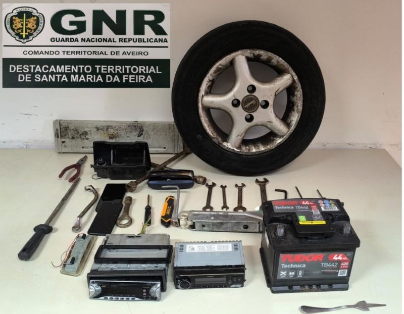 Um homem de 37 anos foi detido pela GNR, em Santa Maria da Feira, a 25 de março último, por furtar um veículo e numa busca ao carro apreendeu um pneu; uma bateira de 12V; dois telemóveis dois rádios de automóvel; um x-ato; uma lâmpada de luz interior de automóvel; uma chave de rodas e 12 peças de ferramentas diversas, informou a Guarda esta segunda-feira.