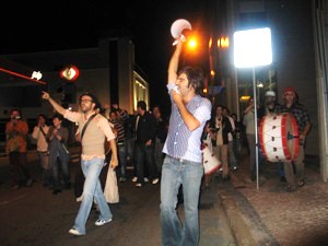 A dupla estava nessa noite acompanhada por vários músicos e o espectáculo transformou-se numa arruada ou numa manifestação seguida de comício.