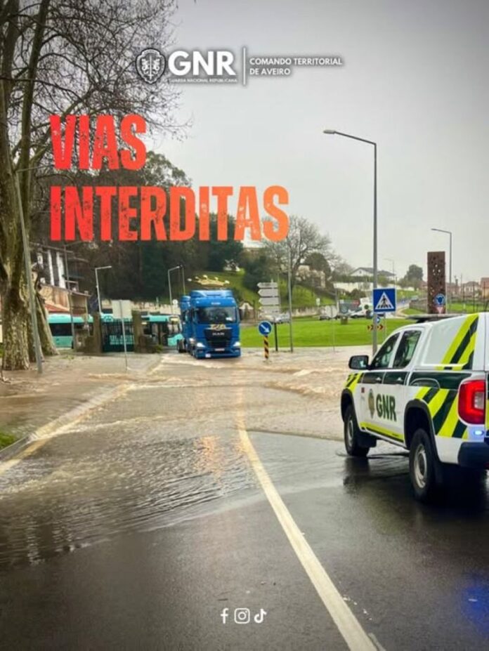 O rio Vouga galgou as margens e inundou estradas, ruas e casas em Angeja e Frossos, em Albergaria-a-Velha, e, em Aveiro, há ruas cortadas.