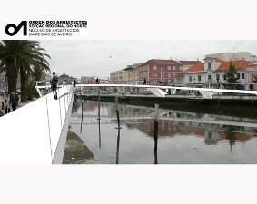 O Núcleo Arquitectos de Aveiro simulou da Ponte Pedonal que atravessa ao Canal Central, em Aveiro, já disponibilizadas à Câmara que está a promover a obra.