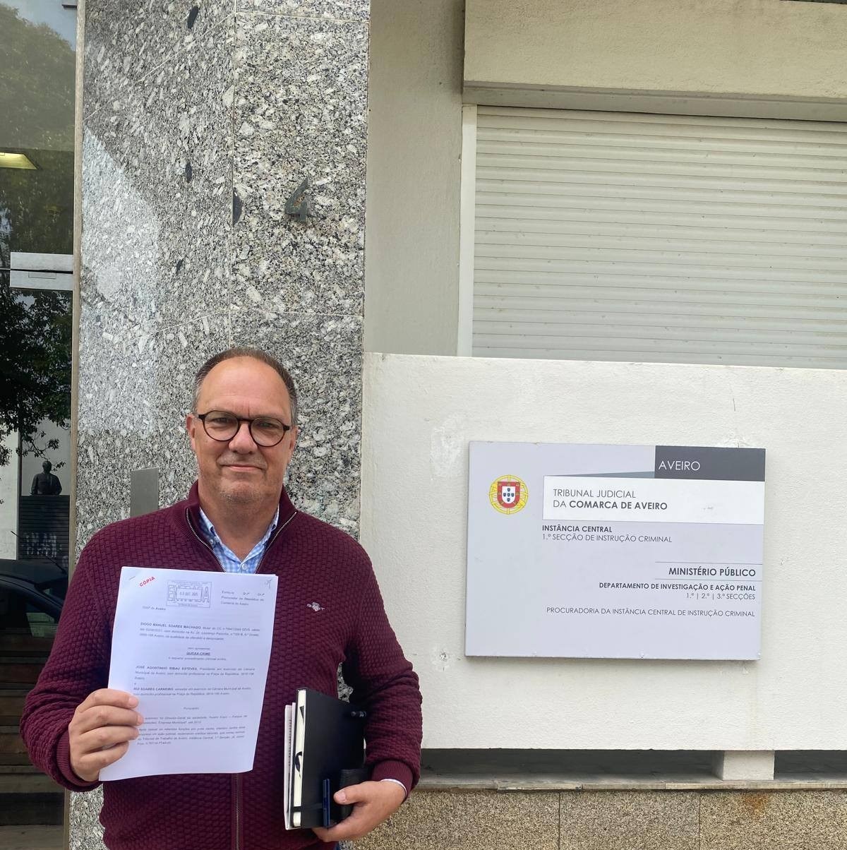 O candidato do Chega à Câmara de Aveiro, nas eleições autárquicas de 12 de outubro, apresentou uma queixa no Departamento de Investigação e Ação Penal de Aveiro por difamação agravada contra José Ribau Esteves PSD-CDS-PPM, presidente da Câmara de Aveiro, e Rui Soares Carneiro, vereador, eleito pelo PS, atualmente sem a confiança política do partido.