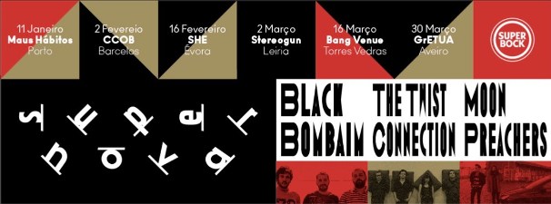 Participam Black Bombaim, Moon Preachers e The Twist Connection, que actuam no Porto (Maus Hábitos), Barcelos (CCOB), Évora (SHE), Leiria (Stereogun), Torres Vedras (Bang Venue) e Aveiro (GrETUA). As entradas dão direito a duas Super Bock, à exceção do Maus Hábitos, com acesso livre.